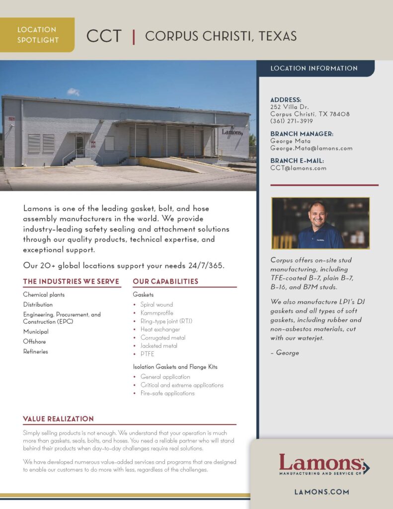 Get a quick overview of what Lamons Corpus Christi has to offer. Download our one-page flyer to see our capabilities, product expertise, and responsive services.