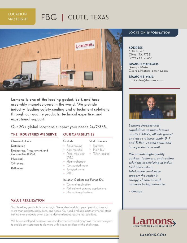 Get a quick look at what Lamons Freeport has to offer. Download our one-page flyer to see our branch capabilities, product expertise, and around-the-clock services.